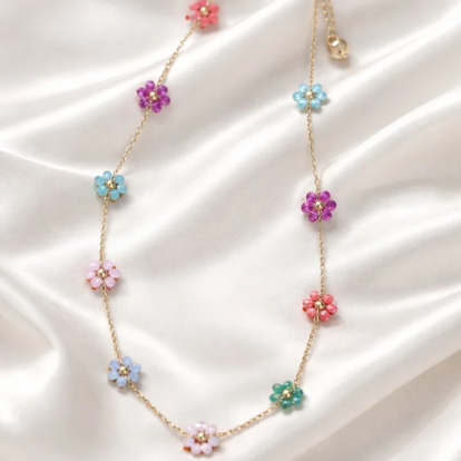 Stainless Steel goude ketting met kleurige bloemetjes